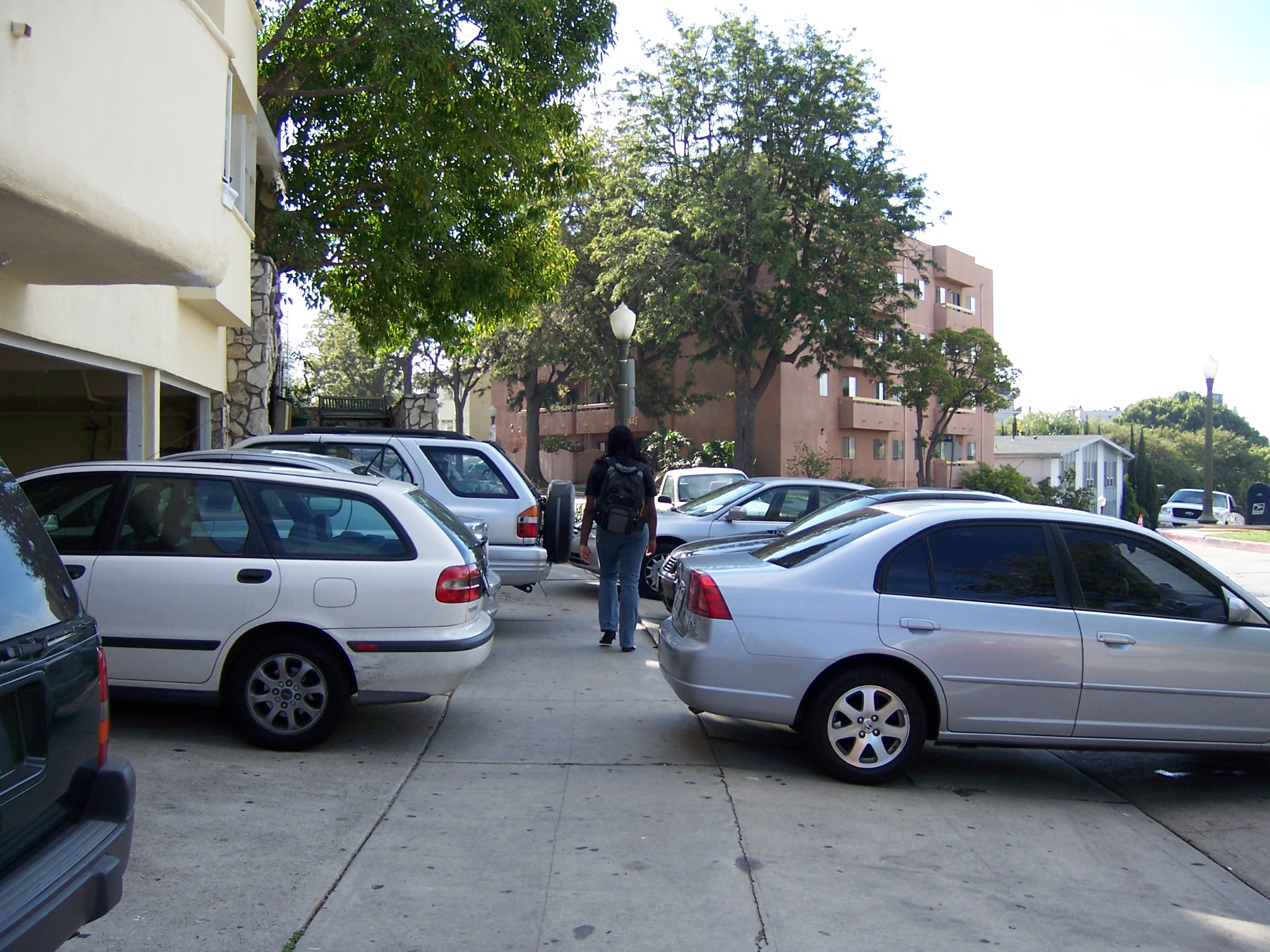 In Westwood Village near UCLA, for example, he finds that people park on driveway aprons, often blocking sidewalks on the crowded streets. Landlords charge their tenants for these parking “spaces” even though the land is publicly owned. Although blocking sidewalks is illegal, enforcement in the area is lax, says Shoup, because it is a student area and the local city councilmember has requested “relaxed enforcement.”